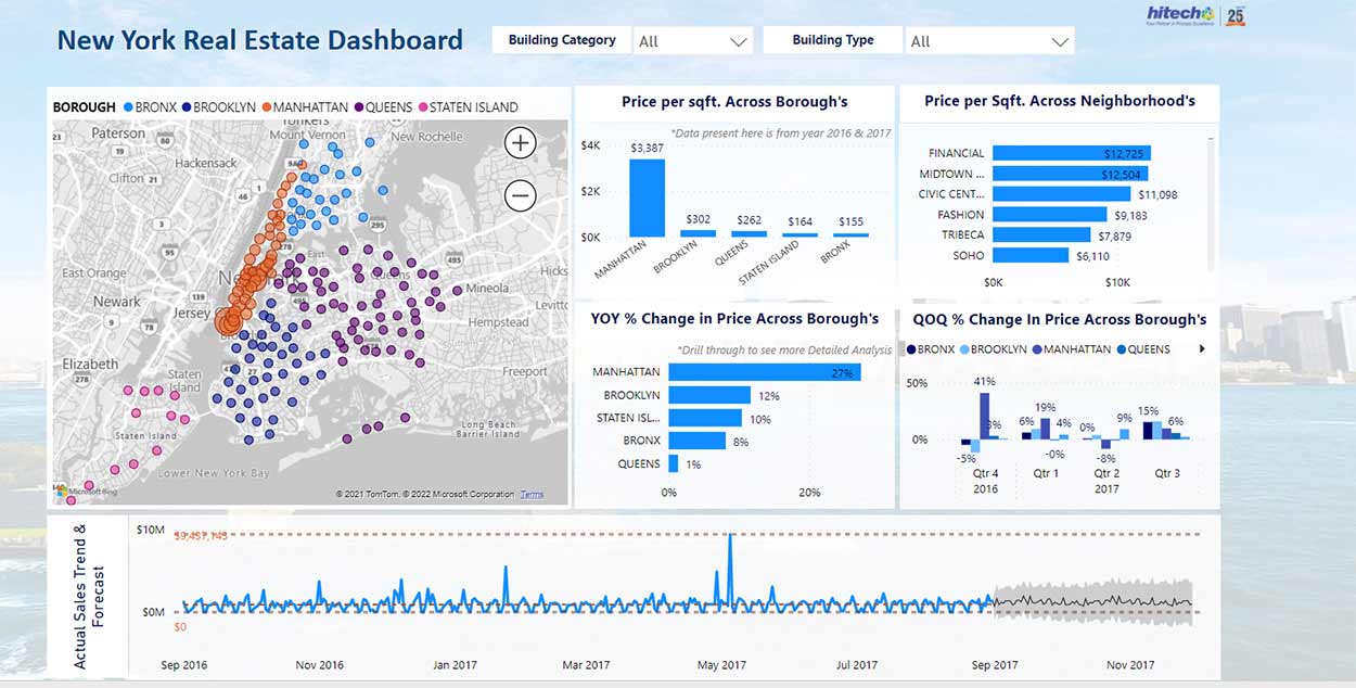 The real estate aggregator hence partnered with HitechDigital to prepare an interactive dashboard to offer users a drilled down, filtered or holistic view of property price data across parameters.